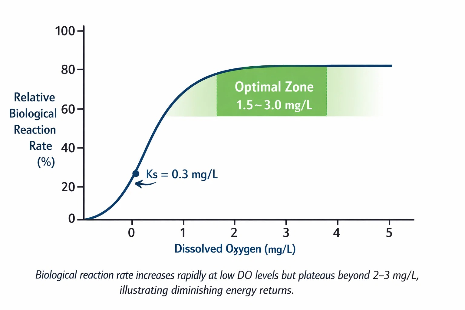 Isto explica por que a maioria das estações de tratamento tem como alvo 1,5–3,0 mg/L OD .